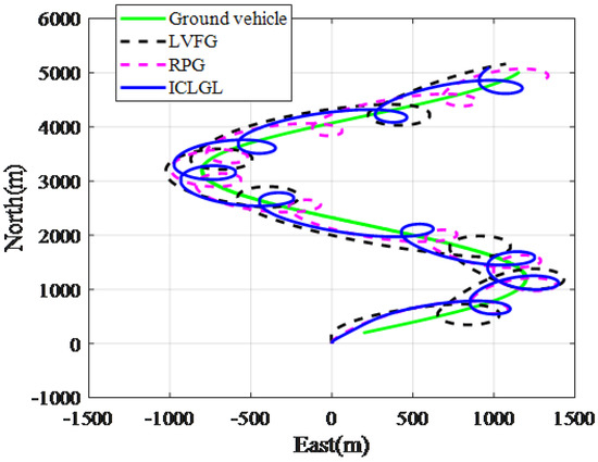 This section contains three simulations. The first simulation results show that the OTSCKF filter has high estimation accuracy for vehicle motion. Then, the performance of ICLGL with other standoff tracking methods is displayed. Finally, the target tracking based on the OTSCKF is proposed.