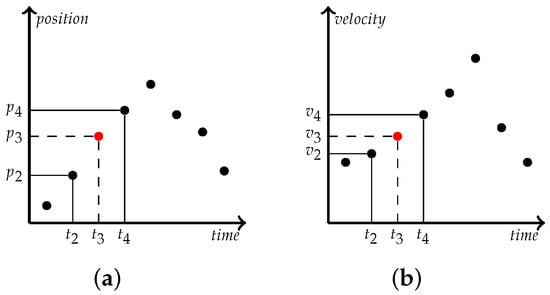 where is velocity difference between trajectory points, is time difference between trajectory points. The mathematical relationships between the , and of trajectory points are established by Equations (1)–(3).