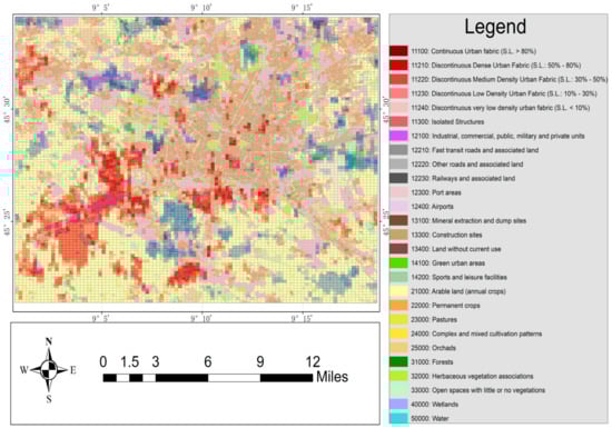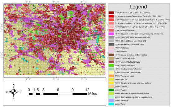 The geographic features dataset used in this study mainly includes the land-use dataset and the point-of-interest (POI) dataset ([19] Wu et al., 2018; [20] Li et al., 2019). The land-use dataset was collected by earth observation satellites and combined with observations from the earth’s surface sensor network in 2012. Copernicus is a European program for monitoring the earth (https://land.copernicus.eu/local/urban-atlas/urban-atlas-2012?tab=download, 12 January 2021). The land-use dataset includes 21 land-use types, which is shown in Figure 3.