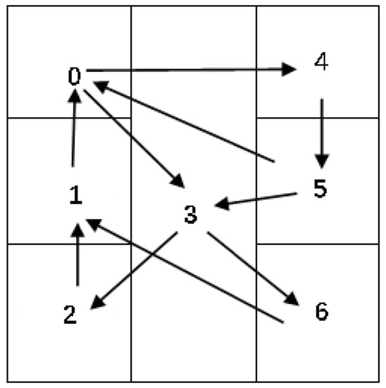 For example, in Figure 5, there are 11 spatial interaction records in a non-overlapping spatial tessellation with 7 grids. The corresponding extracted spatial interaction network is shown in Figure 6.
