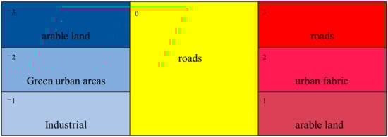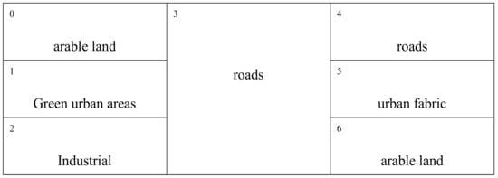 For a set of land-use types,is defined as a land-use dataset, whereis defined as theth element in the geographic dataset,represents the region where the land plotis located, andrepresents the land-use type of the land plot. For example, Figure 8 includes five land-use types:, and the land-use dataset, where,.