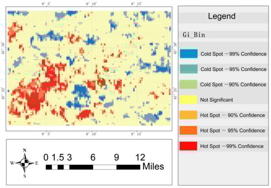 Typically, the hot/cold spots are usually divided into three categories according to the confidence level of [24 ] Zhou, 2019). The level (+3, −3), (+2, −2), and (+1, −1) represents the hot spots and the cold spots with confidence 99%, 95%, 90%, respectively [25 ] Wen, 2018).