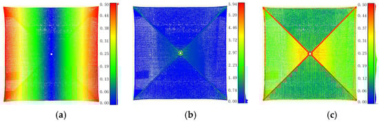 where is the length of on the plane, is the distance from a point to the symmetry axis of the MQDOAs. Obviously, the NSD is the same, and the point class is the same. Moreover, the NSD of roof components located at the outermost contour of the roof is nearly 1 for each section line. On the plane, the staggered phenomenon of points is lower.