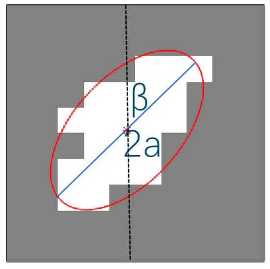 After the regional boundary is extracted, the ellipse is fitted by obtaining the coordinates of multiple points, including the extreme values, and the long axis and angle of the ellipse are calculated to discern whether the length is in accordance with the length of the ventilation corridor at all levels and the angle with the dominant wind direction, as shown in Figure 4.