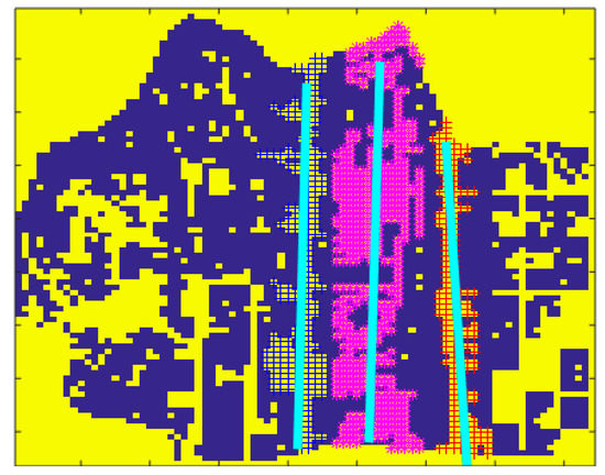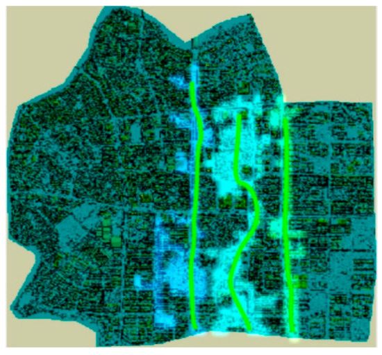 Finally, the system overlays the mined ventilated corridor area that meets the original urban DSM map conditions. The accurate ventilated corridor is formed by B spline algorithm, as shown in Figure 13.