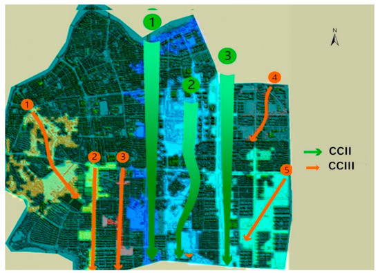 In urban planning, ventilated corridors are related to the size of the city. To describe the urban ventilation potential in more detail, this research classifies the ventilation corridors of small and medium-sized towns into three levels: CCI, CCII, and CCIII. Parameters are as follows (Table 1):