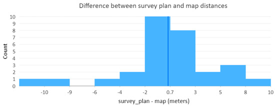 Figure 9 charts the differences without corrections, and the blunder measurements for road widths are apparent as the outer values in the chart.