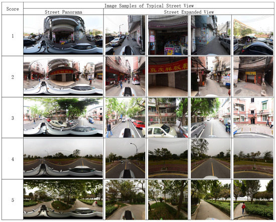 Second, in the research of the elderly to get a Streetscape image score, the subjects are 90 elderly people aged 60 and above in Guangzhou. For each street, since we do not know how many elderly people live in them, participants are recruited through convenience sampling with a number of 10. According to the definition of street space quality, the process of evaluation is a combined reflection of the physical and perceptual characteristics of the streets [2]. Especially, due to the limited range of activities of the elderly, it is of more practical significance to select the elderly who are familiar with the sampling streets in the sample selection for studying the quality of their activity space. Therefore, all the sampling people have been living there for a long time and often do physical activities, so they are for sure relatively familiar with the streets, which ensures the accuracy of their scoring of the sample pictures of the street. Before each respondent evaluates the Streetscape images, he or she needs to generally browse the images and understand all the pictures. A five-point Likert scale is applied, and the options “very poor, poor, fair, good, and very good” are valued “1, 2, 3, 4, and 5”, respectively [26]. The subjective quality score of each Streetscape sample map can be obtained by averaging the three scores. Meanwhile, to improve the accuracy of scoring and reduce the impact of mental memory on the evaluation results, before each scoring researchers emphasize to the respondents that the evaluation is about visual quality for physical activities. For example, a question such as, “If you look at this picture, from the point of view of physical leisure activity, such as whether it is suitable for you to take a walk, how would you like to see its quality?” is asked during the interview. Besides, further confirmation and double-check by means of in-depth interviews about reasons after scoring are conducted for analysis, so as to reduce the likelihood of biased responses.