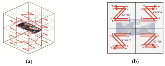 On the basis of GeoSOT grid division, whether it is the 2D grid coding or the 3D grid coding, hierarchical coding is assigned to each grid according to the “Z” sequence, as shown in Figure 4. There are various encoding forms, including binary one-dimensional encoding, binary two-dimensional encoding, binary three-dimensional encoding, quaternary one-dimensional encoding, octal one-dimensional encoding and integer encoding, etc. These encoding types can be easily converted to each other according to certain mathematical rules and 132 still have internal consistency.