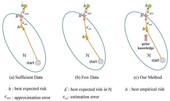 In addition, the training required to process large volumes of data continues to limit the scale and depth of ERM []. We need to build a new optimization method for few-shot learning under the ERM paradigm. Figure 4a,b demonstrate the difference between sufficient and few samples in the machine learning process.