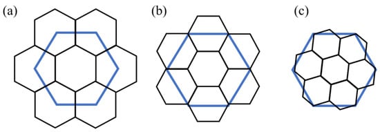 Hexagonal grids with different apertures: (a) Aperture 3; (b) Aperture 4; and (c) Aperture 7.