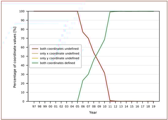 Data mirror real life: they are recorded by fallible persons and are stored in information systems which contain errors. Considering this fact, the data usually contain errors, mistakes, and missing values. In a large organization using large information systems, it is not simple to ensure that a new quantity (i.e., an attribute in a database table) will be logged without a problem at one time in all places. As can be seen from Figure 1, it can take approximately six years to ensure that the location of an emergency is logged without problems.