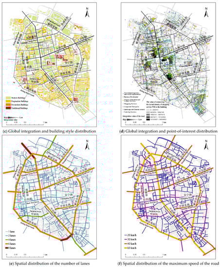 In this paper, the vector data of building height obtained from Map World, the point-of-interest data obtained from Amap, and the spatial distribution data on building age, architectural style, number of lanes, and maximum road speed obtained from fieldwork were integrated into ArcGIS software.