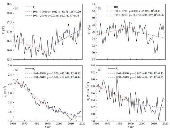 - Wang, Z.; Ye, A.; Wang, L.; Liu, K.; Cheng, L. Spatial and temporal characteristics of reference evapotranspiration and its climatic driving factors over China from 1979–2015. Agric. Water Manag. 2019, 213, 1096–1108. [Google Scholar] [CrossRef]