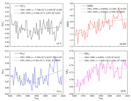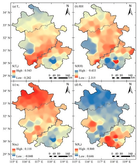 3.2. Spatiotemporal Variations of Meteorological Factors