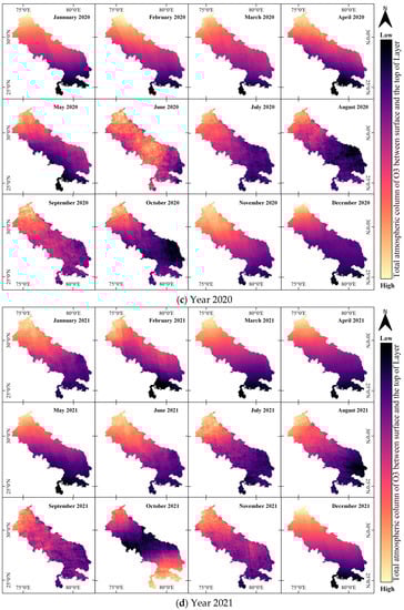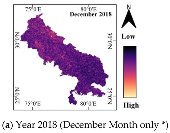 To illustrate the spatio-temporal variation of major atmospheric pollutants due to the excessive stubble burning, the analyses of the above-mentioned analysis were obtained for different periods as listed above, corresponding to the stubble burning months, as shown in Table 2 (for years 2018, 2019, 2020, and 2021).