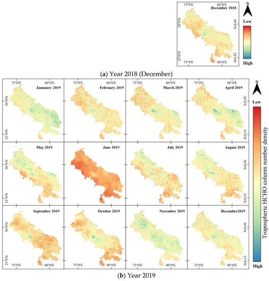 4.3.7. Formaldehyde (HCHO) Concentration Distribution