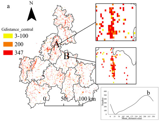 Therefore, we designed a distance-based index to measure the spatial proximity of retail shops in nearby grids to the central grid. Unlike the method proposed in previous studies, which calculated the distance between two retail shops, we built our index according to the distance between each retail shop and the central point of the study grid. This approach cannot only reduce the calculation complexity, but also better describe the situation when only one retail shop is present.
