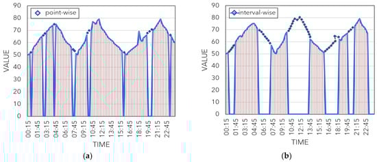 Illustration of (a) point-wise missing data and (b) interval-wise missing data.