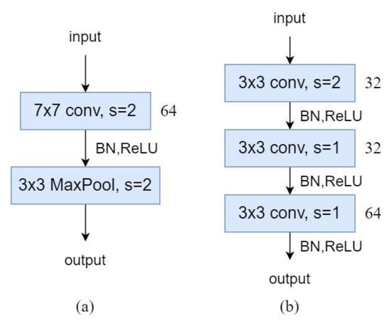 The stem stage of the (a) original ResNet and (b) our feature extractor.