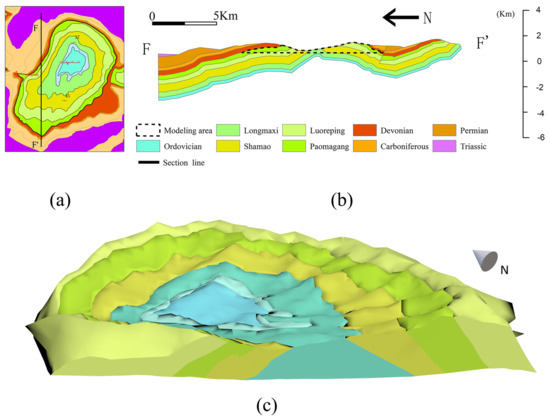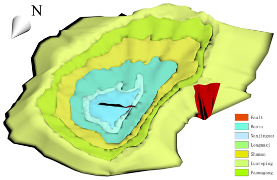 This experimental area is the Wulongshan dome developed in the strata of Paleozoic in Zigui County, Hubei Province, China. The Wulongshan dome is located in the core area of the Yangtze Craton in South China, between the Huangling dome and the main body of the Xianglongshan anticline. It is a typical dome structure, which has continuous sedimentary strata and an abundant fossil record. This area has always been a hotspot for studying the frontier issues of geoscience, such as the growth and evolution of the Early Precambrian continental crust of the South China Yangtze Craton, and intracontinental compression, uplift and extensional tectonics of South China in the Mesozoic-Cenozoic era [48]. The structure has six strata from inside to outside, namely, Baota Formation, Nanjinguan Formation (including Honghuayuan Formation, Dawan Formation, Guniutan Formation, etc.), Longmaxi Formation of Ordovician, Shamao Formation, Luoraping Formation of Silurian, and Paomagang Formation of Cretaceous. In addition, the main structure is basically not covered by volcanic rocks and loose layers, which is conducive to the implementation of the modeling method in this article.