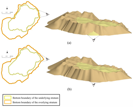 This problem can be solved according to the principle of ground stacking. The specific method is to optimize the boundary line of the overlying stratum at the penetration part by extrapolating the boundary line of a certain thickness based on that of the underlying stratum, according to the principle of consistency of stratum thickness (Figure 20).