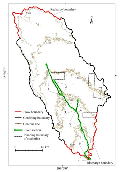 Coal burial in China is characterized by strong geological reconstruction after coal formation due to which water inrush accidents occur frequently during coal mining [10]. Such accidents pose serious threats to the safety of miners and mine production equipment, hinder the development of coal industry and mining operations [11], and even bring a series of ecological and environmental problems. Therefore, it is necessary to study the groundwater system of coal mining areas. For example, Yu et al. [12] carried out field trials on coal mine geological engineering in the Bucun coal mine, China, based on theoretical calculation and numerical simulation, and proposed a combined controlling measure considering underground coal mining and the water environment. Andres and Jose [13] presented a conceptual and numerical model of two linked mines in Spain for the assessment of possible environmental risks following closure. Wu and Wang [14] presented a conceptual framework with multilayered groundwater flow systems for the characterization of water bursting and discharge in underground mines, based on the characteristics of regional geological conditions, and they analyzed mine water inrush and flooding events in the north China coal basin.