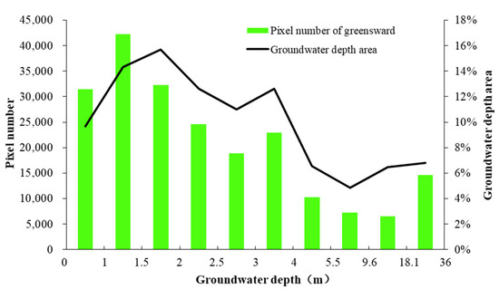 Distribution area of groundwater depth and the number of greensward pixels.