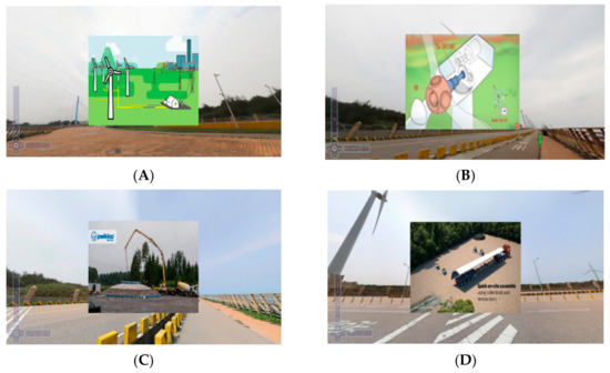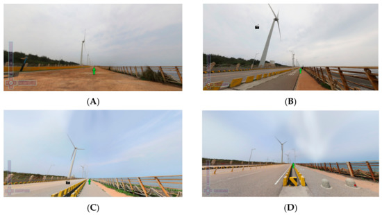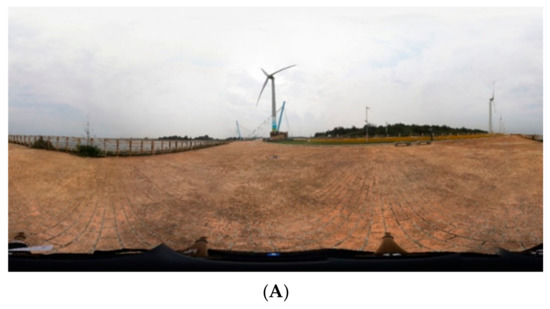 From the visualization and application-based perspective, the Street View function of Google Maps enables the public to explore popular tourist attractions; however, not all locations are covered by this function. The constructed platform for onshore wind farms established in this study offers high-quality panoramas, detailed introductions to wind turbine functions, and videos illustrating wind turbine technology. This integration between panoramas and wind turbine introductions could expedite learning about wind power. From a tourist viewpoint, the information of provided attributes and videos is suitable for public users. From a civil engineering perspective, the installation and construction of wind turbines comprise various work stages, and a comprehensive plan is required to determine which methods, equipment, and machinery are used in accordance with the surrounding environment. For example, the turbine presented in Figure 11 has a diameter of 70.7 m, which requires a careful choice of crane and transportation tools for installation in accordance with the environment surrounding the construction site. The proposed platform provides opportunities for students and learners to practice making comprehensive construction plans. Therefore, this platform can be directly used to promote the tourism site and onshore wind farms, or be further extended for engineering education.