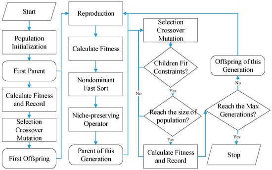 This work also introduces elitism to the model, which preserves the individuals with the best performance for each objective to force the solutions to approach the optima. The algorithm ends when the given maximum iteration is reached; otherwise, the algorithm returns to reproduction.