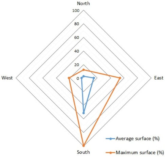 Due to the topographical characteristics of the area and its urban and architectural use, the predominant orientation of the visual basins of the dwellings belonging to the study area can be seen in Figure 4.