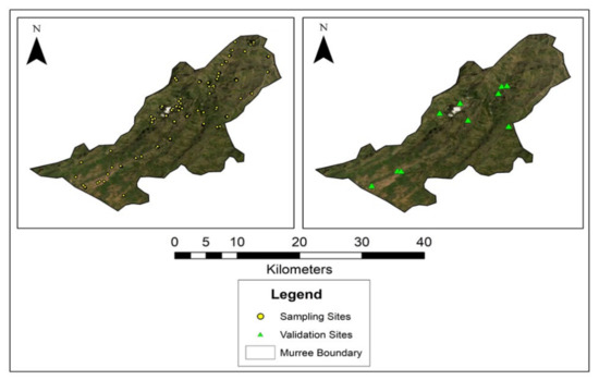 Sampling sites map and validation sites map (locations of the boreholes).