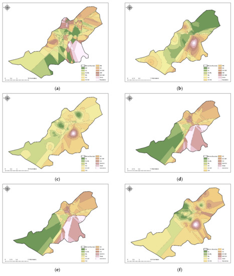 - Shit, P.K.; Bhunia, G.S.; Maiti, R. Spatial analysis of soil properties using GIS based geostatistics models. Modeling Earth Syst. Environ. 2016, 2, 107. [Google Scholar] [CrossRef] [Green Version]