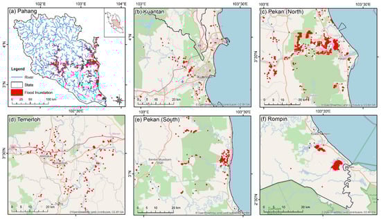 Flood inundation maps of Pahang during the 2021–2022 Malaysia flood.