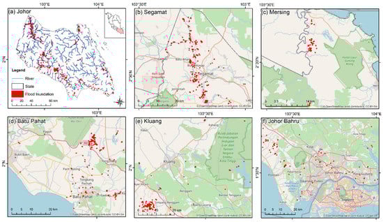 The most inundated district in Johor was Segamat (2.61 km2), which is located in the southern part of Johor. Besides that, Mersing was recorded with flooding of 0.38 km2, Batu Pahat had flooding of 1.6 km2, Kluang had flooding of 1.5 km2, and Johor Bahru, the capital city of Johor, was flooded 0.23 km2.