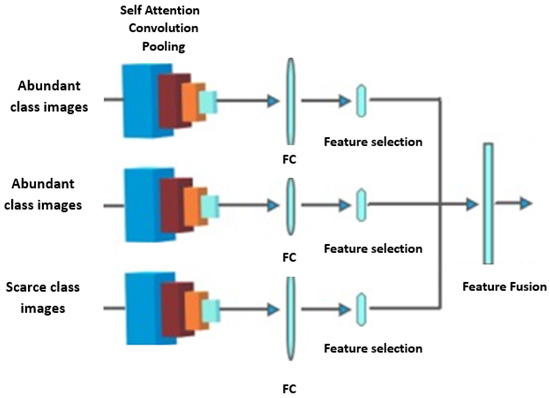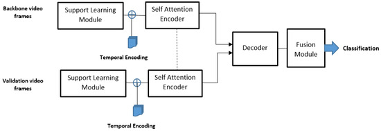 In the proposed support model, the partitioning of the model into multiple parallel phases of self-attention encoders is followed by pooling. Each self-attention encoder is fed by abundant class images and only the last two phases are fed by the scarce class images. Multiple feature sets are extracted from each phase. All feature sets are collected and utilized through a stride fusion model of the feature maps. The resolution from the pooling modules is of a lower resolution than the auto encoder stage. Each parallel phase extracts feature map vectors and then the fusion model performs multi-stride fusion. The feature maps of both the abundant and scarce resolutions are merged, and our model employs stride encoders for the abundant surveillance video frames and down-sampling for the pooling layers. The fusion technique utilizes pixel averaging, and the multiple channels of the resolution feature maps are adjusted to the same value. In addition, to enhance the receptive value, stride convolution computes the feature map vectors in the first phase. In order to improve the focus of the locus of the feature map, we utilize parallel temporal attention at the completion of each phase.