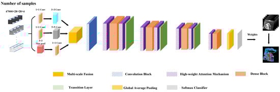 To solve the problems of misdetection, low classification accuracy, and weak generalization ability in the cloud and snow recognition task, a multi-scale fusion attention network (MfaNet) is proposed. Its structure is shown in Figure 1. It is composed of a densely connected network as the backbone network and combined with a multi-scale fusion module and an attention mechanism. This network can reduce the problem of false detection and missed detection in cloud snow recognition and improve the generalization recognition ability.
