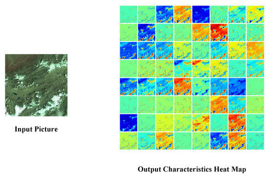 In an excellent convolutional neural network model, to ensure a comprehensive understanding of the input data, it will contain rich and even redundant feature maps []. These feature maps support the network architecture of the convolutional neural network and are an indispensable part of the network model. In the cloud and snow recognition task, we visualize the feature map of the layer in the ResNet18 structure, as shown in Figure 6. To facilitate comparison, we present it in the form of a heat map. From this set of heat maps, we can see that for the 64 feature maps in this layer of convolution, some heat maps have similar details. For these similar feature maps, we can understand that they are formed through some kind of linear or non-linear transformation. For example, in an ideal situation, the feature maps of a certain layer are all learning edge features. There is horizontal edge information, left edge information, right edge information, etc. These feature maps can all pass through a feature map after conversion.