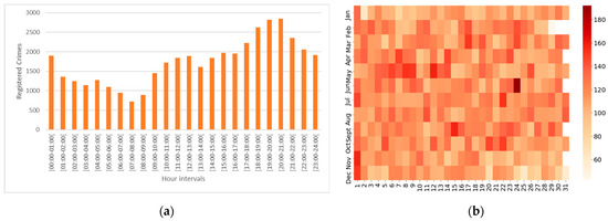 Porto’s registered crime occurrence between 2016 and 2018: (a) by hour; (b) by month and day (source: authors, based on data reports of Porto’s Public Safety Police).