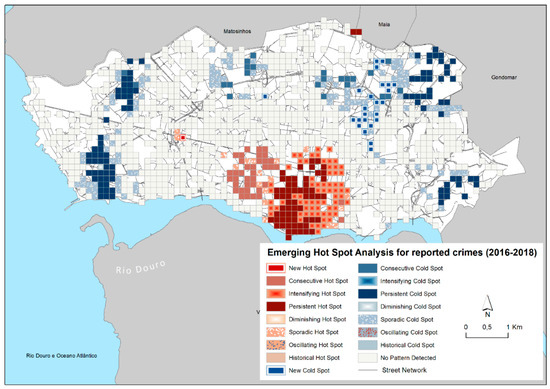 Emerging hotspot analysis for reported crimes (source: authors, based on data reports of Porto’s Public Safety Police).