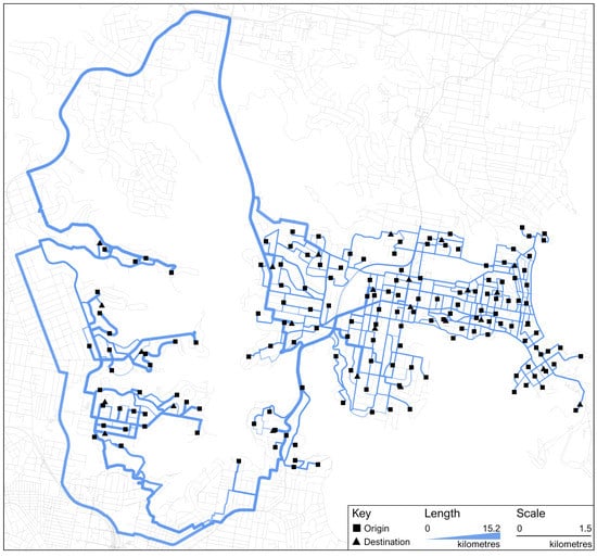 Differential costs are most apparent when low-accessibility is also coupled with lowered income []. Taking the specific example of access to employment opportunities, it was found that the differential costs of movement incurred by segregated, low-income communities have the adverse effect of restricting the search for employment to proximate areas, despite the availability of higher potential incomes further away []. Separating distances play a large role in these choices, particularly as these demographic groups often require greater ease to travel given the ad hoc nature of their employment [,,]. Giuliano and Small [] also reported that employing institutions often do not regard commuting distance as a barrier to workforce hires. Hence, there is typically no strong impetus to increase job proximity through the spatial redistribution of employment. Coupled with lowered incomes, it becomes clear that the issue of poor accessibility can be all the more punishing. Its prolonged effects in urban pockets often precedes the ghettoisation of lower-income earners [,].