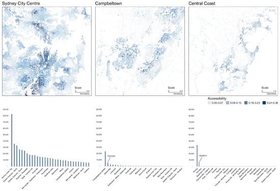 Distribution of computed potential accessibility scores to employments centres in Greater Sydney.