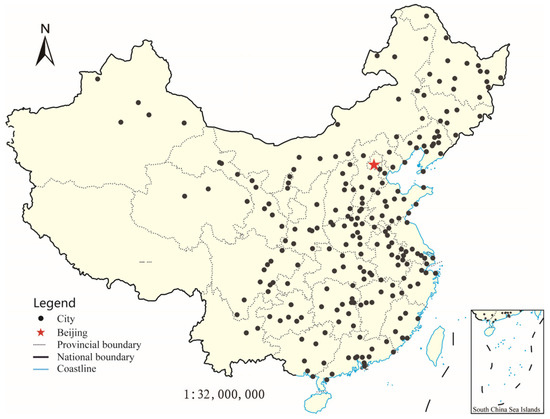 Beijing and the 226 cities selected in the research.
