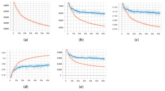 To reflect the optimization in the iterative process, Figure 4 shows the change in the test indicators of one fold during model training. In more than 30,000 epochs, if the loss for the validation set does not decrease after 9000 epochs, the neural network training is terminated.