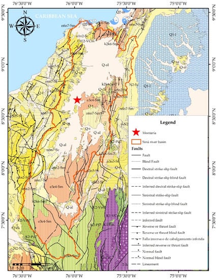 The obtained results for morphometric parameters, such as hypsometric curve of the basin, , , stream order, and corroborated that the lower and middle Sinu sub-basins are susceptible to floods as evidenced by the flood events that have historically occurred in the study area. Concomitantly, the results indicate that the upper Sinú sub-basin is susceptible to erosive processes, which was confirmed by the review of the available information on the geology and geomorphology of the study area, establishing that the basin is framed within two large geo-structures: the mountain range or Cordillera (upper Sinú) and the sedimentation mega-basin (middle and lower Sinú). Thus, it is established that the prevalence of alluvial deposits in the basin is due to the material resulting from erosive processes in the upper Sinú that ends up being transported to the rest of the basin. Therefore, the results validate the basin geological heterogeneity.