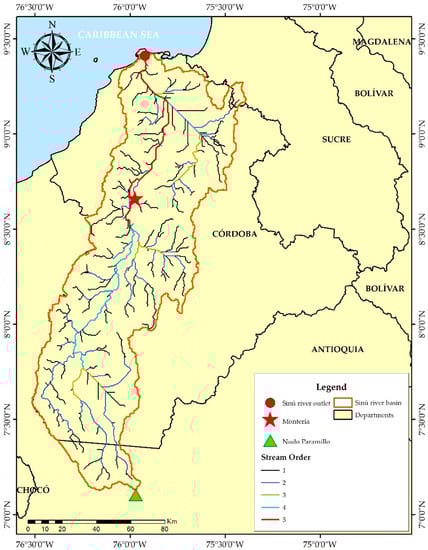 Stream order of the drainage network of the Sinú river basin (Colombia), schematized by GIS.