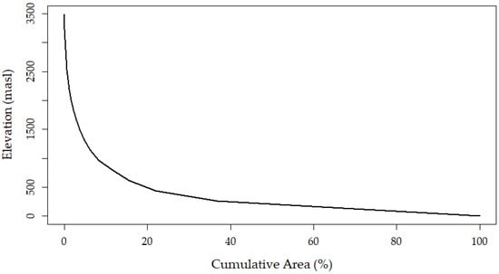 The hypsometric curve is the graphic representation of the basin relief, where its ordinate represents elevation in meters above sea level, and its abscissa, the area in km2 that is between two levels.