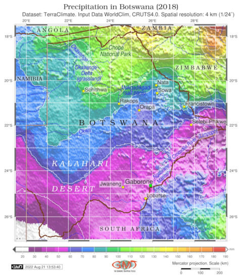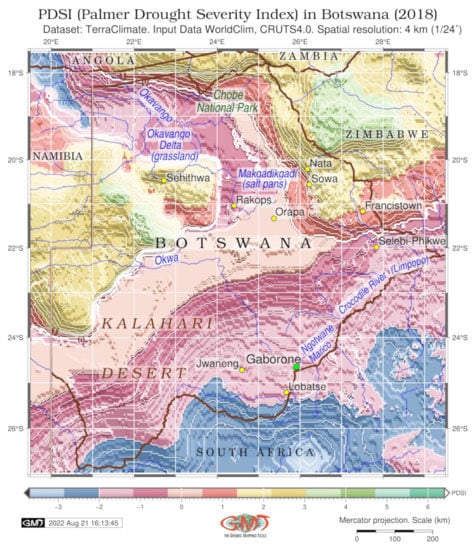 Africa; Botswana; cartography; climate; computer science; data science; drought; GMT; mapping; programming 1. Introduction