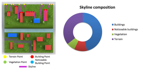 View composition analysis. (Left): decomposition of the skyline according to the intersected object. (Right): the view composition.