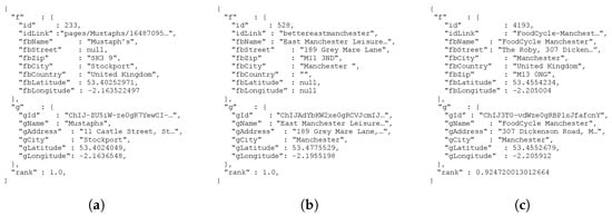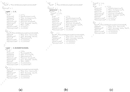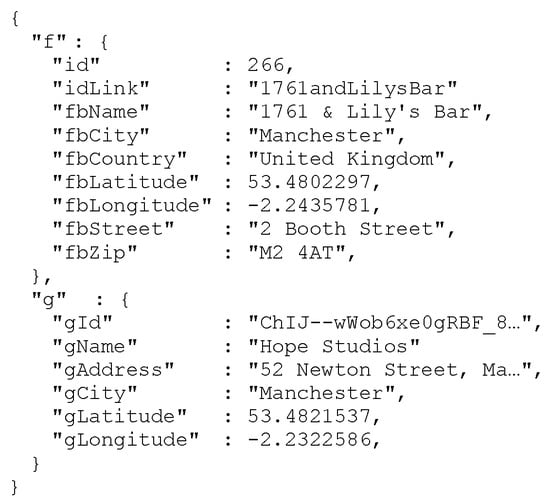 Nevertheless, integrating geo-tagged data sets describing public places is not a novel problem; in general, traditional approaches rely on machine-learning techniques that require a preliminary training phase. In [], the problem was addressed in a different way, because the context of “on-line” aggregation was considered; a fuzzy relation was defined, which provides an easy-to-compute metric that is suitable for on-line integration of data about public places; the experiments demonstrated that the approach is effective and comparable, in terms of effectiveness, with off-line classification techniques. However, the technique presented in [] was hard-coded within the software prototype; this fact made us able to include some pre-processing steps on strings that were performed on the fly, immediately after place descriptors were acquired. However, the approach seems to be general and could be applied for integrating data sets in an off-line way too, with data sets stored within JSON stores. Paradoxically, this apparently small change of context constitutes a significant challenge: in fact, the straightforward solution could be to still hard-code the technique into a software tool, but this approach is not coherent with the world of JSON document stores. We think that exploiting a stand-alone tool able to query JSON stores is preferable, since it is transparent and comprehensible for analysts; however, a stand-alone tool for processing JSON data sets is necessarily less flexible than a programming language. Thus, the challenge is the following: is it possible to identify a stand-alone tool and adapt the integration technique presented in [] to the case of off-line integration of geo-tagged JSON data sets from JSON stores?